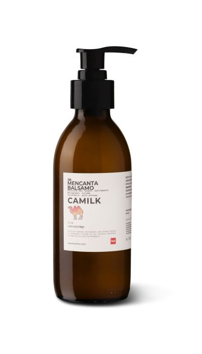 Balsamo proteico a base di Melograno, Proteine del Grano e Latte di Cammella, ideale per arricchire il capello e renderlo setoso e corposo. Utile per donare elasticità e volume senza appesantire.